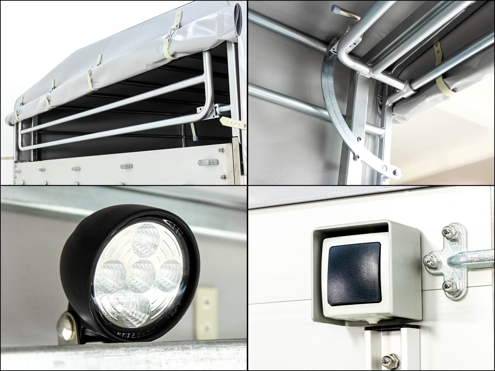 Interne LED-werklamp achter in de zeilconstructie, met schakelaar
