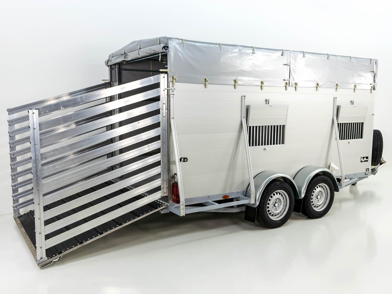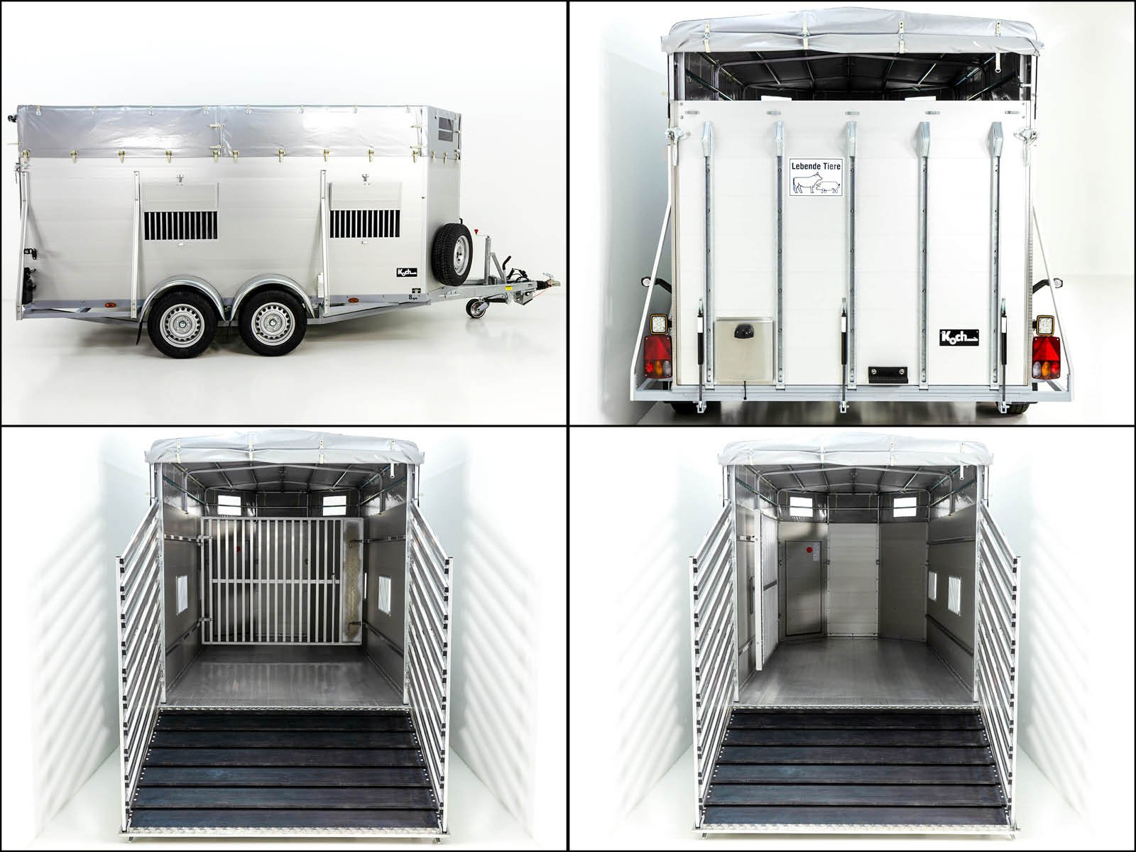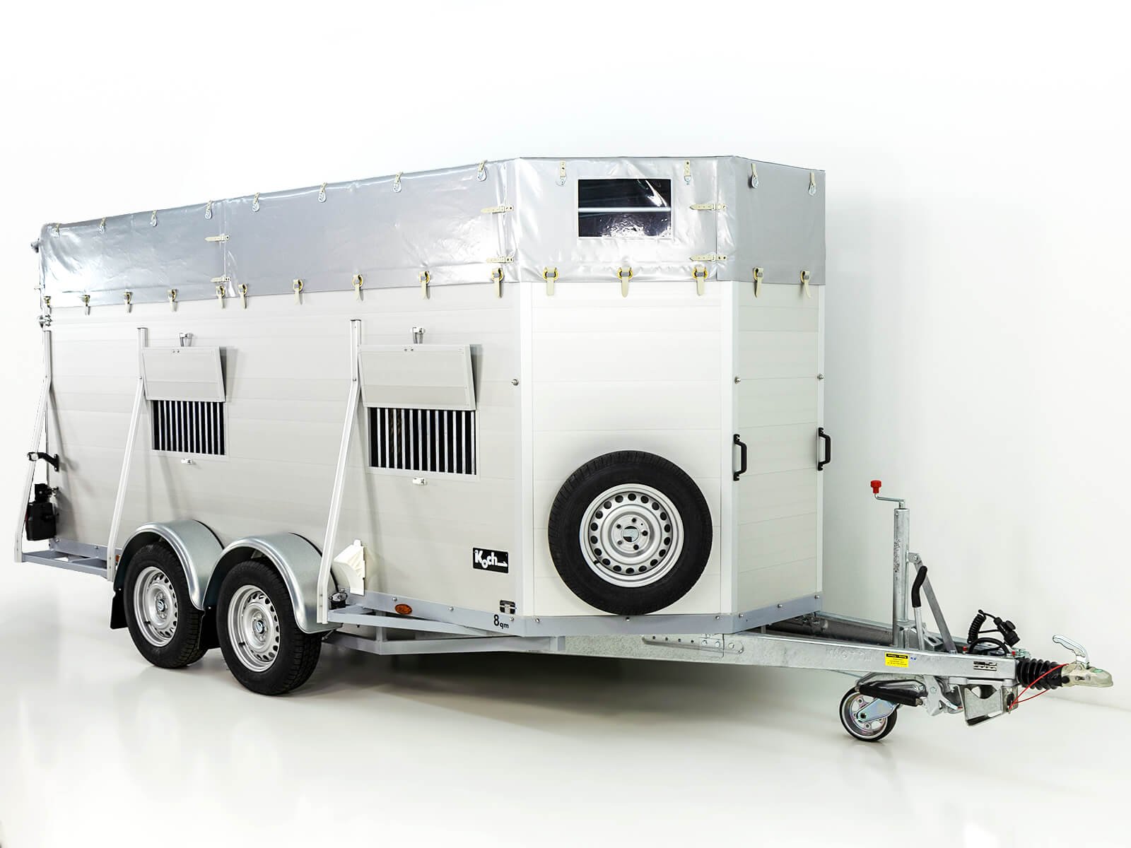 De professionele veetrailer Koch Alf 185×450 cm met een hoogte van 185 cm overtuigt door zijn moderne design, hoge functionaliteit en uitstekende eigenschappen. Deze trailer is perfect voor veilig, efficiënt en diervriendelijk transport en is speciaal ontwikkeld om comfort en gebruiksgemak te bieden.